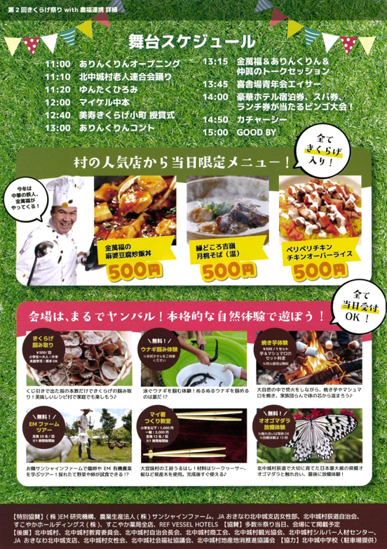2024年から台風復興の感謝を込めて始まった「きくらげ祭り」は、村の仲間と、沖縄初!農福連携(農業と福祉の連携)で創るお祭りです。