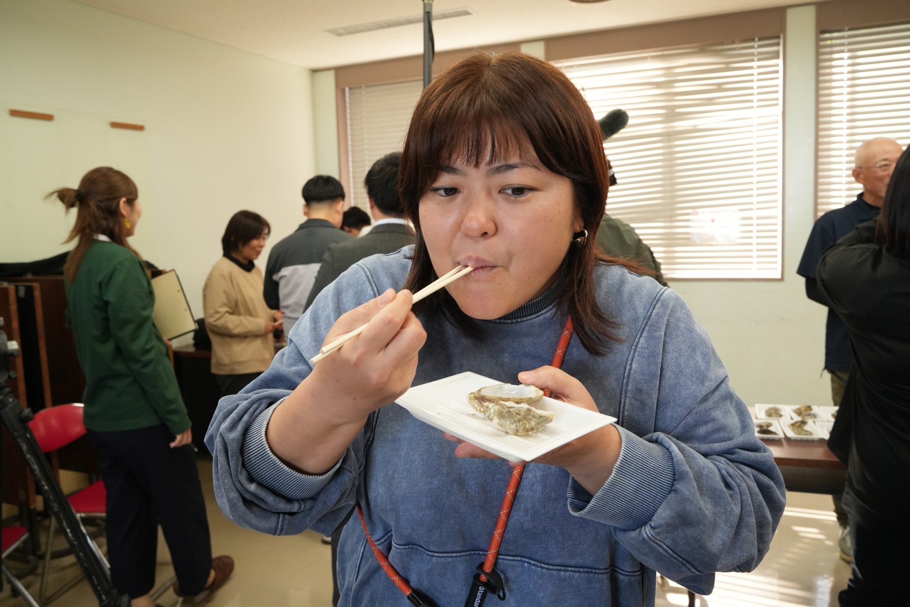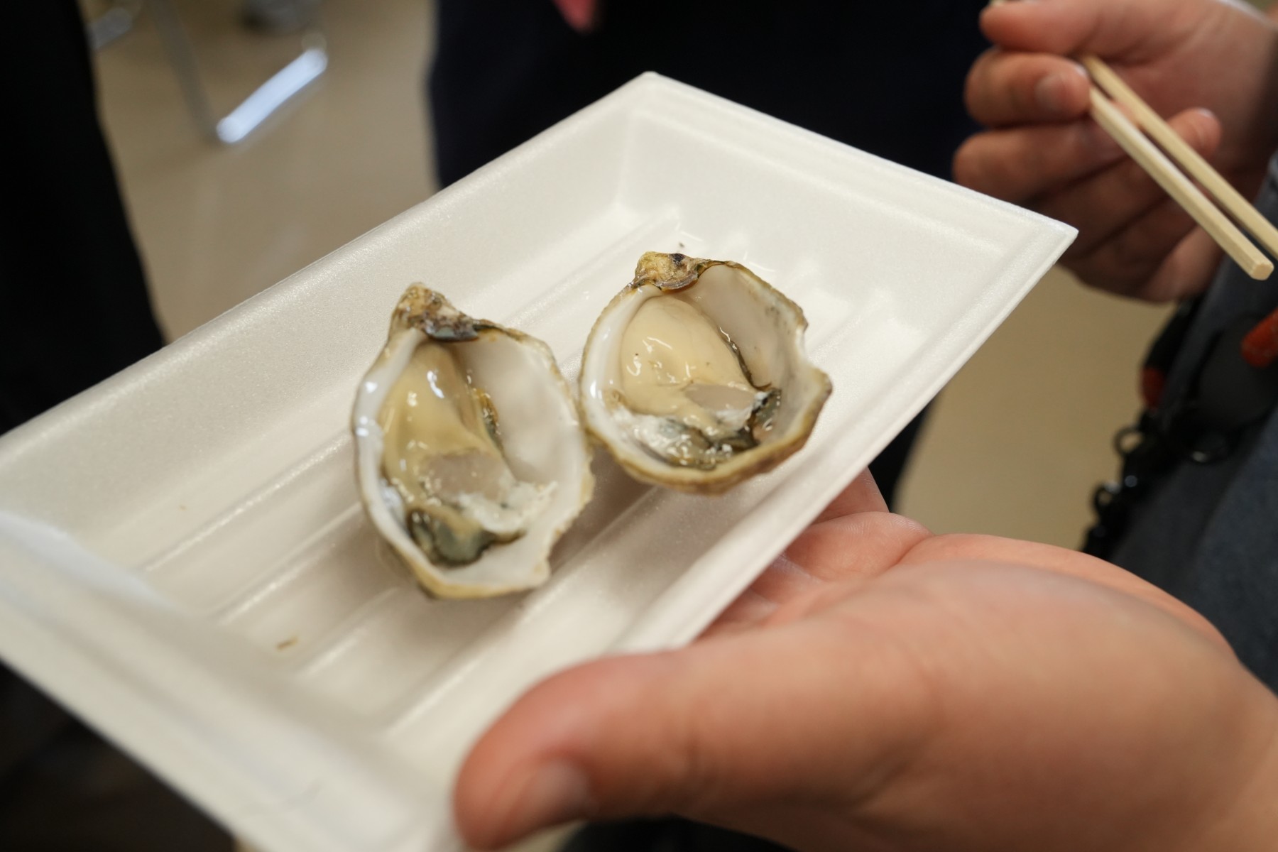 職員も試食した生牡蠣は、調味料がいらないほどの自然な塩味。