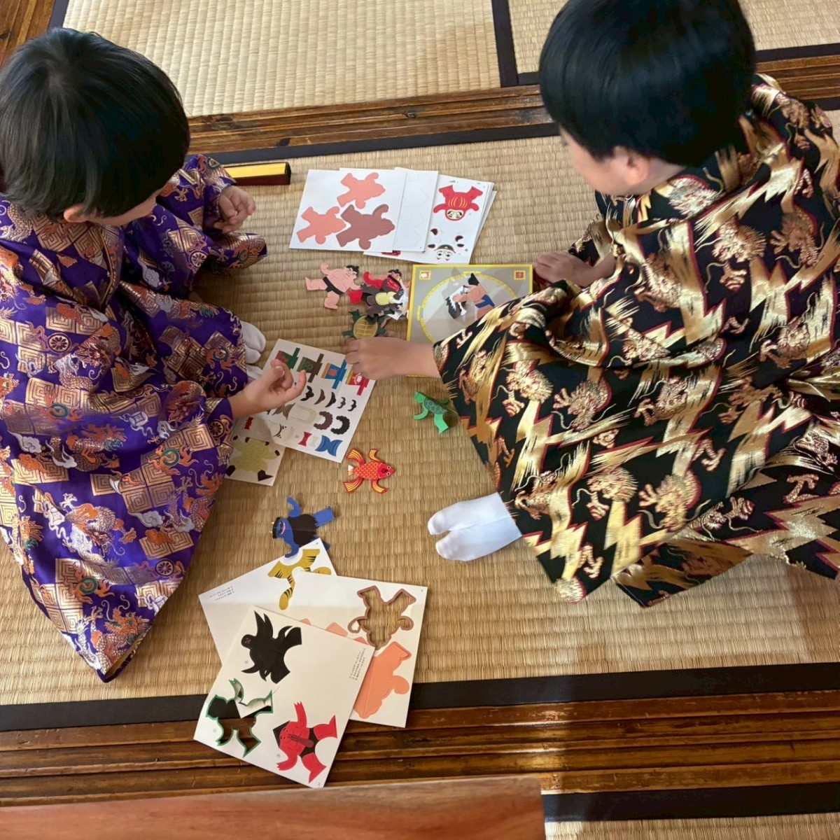 着付け中、他の子が支度をしている間も子供たちはご機嫌でした。店内には子供たちが退屈しないよう、遊び道具や絵本が用意されています。
