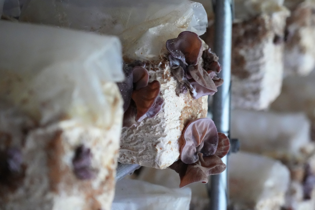 次に向かったのは、県内でも珍しいきくらげの栽培拠点。